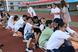 哨声一响,两边队伍就展开了交锋。参赛队员们紧握长绳,用尽全力。中间的红标左右移动,胜负难分。各班同学都在为自己的班级加油呐喊,气势十足。操场上哨子声,口号声,呐喊声此起彼伏,同学们的脸上洋溢着青春活力的笑容。