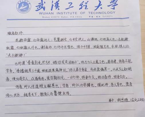 当日下午,同学们为了表达对老师们的培养之恩和感激之情,向老师们书写感谢信。“匠心致传承,笔墨写春秋”,学生们用最朴素的行动向老师们表达了最真挚的感谢,发扬了尊师重教的光荣传统。