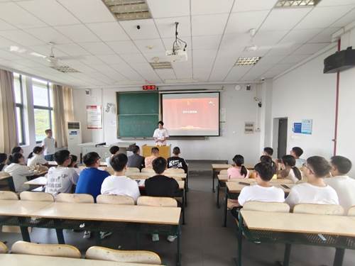 本网讯(通讯员何世凯)最是一年好美景,又到桃李芬芳时。为了欢迎学院456名2022级新生的到来,同时响应学校的疫情防控要求,9428cn太阳集团古天乐创新式地以新生班级为单位,在9月6日至9月9日入学教育期间,在各班班主任的主持下,隆重举办了开学典礼仪式。学院党委副书记许守飞、2022级新生辅导员何世凯、李杨、仝壮受邀参加部分班级开学典礼。