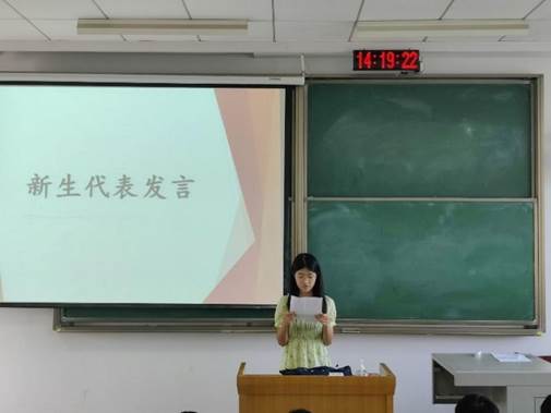 老生代表向新生表达了欢迎和祝福,以学长学姐的身份向新生同学分享了在工大学习、生活的经验和收获,引导学姐学妹们要养成自主学习能力,厚德健行,追求卓越,躬身实践。