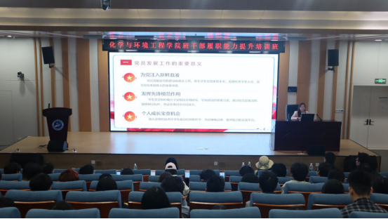 培训会上,党务干事杨依婷首先从党和国家事业薪火相传的高度阐述了党员发展工作的重要意义。她强调,党员发展是党的建设基础性工程,学生干部作为基层组织的重要力量,必须扛起政治责任,以严谨细致的作风协助党组织做好“选苗育苗”工作,为党输送政治过硬、品学兼优的新鲜血液。