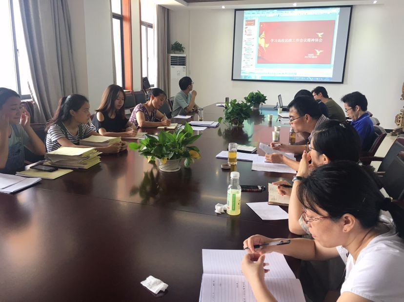 7月6日上午,9428cn太阳集团古天乐召开全国高校思想政治工作会议精神学习培训会。学院党委书记刘汉红、各部门负责人、党支部书记参加会议,会议由学院党委副书记苏纯华主持。
