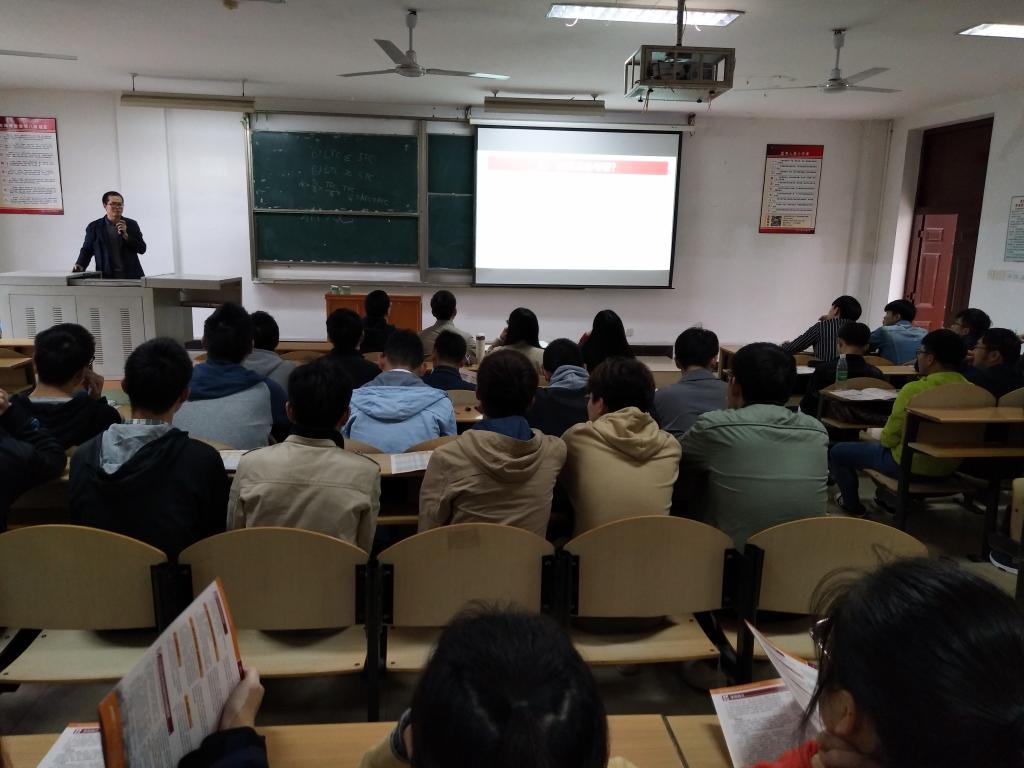 学院副院长陈金毅教授从学院师资力量、导师研究方向、2018年考试科目及学院的研究生奖助政策等方面做了考研动员。陈院长鼓励同学们客观分析形势、努力把握好政策,结合自身实际情况准确定位,在考研过程中实现科学报考、积极备考、主动应考,努力提高考研成功率,最后陈院长预祝大家在2018年研究生考试中取得好成绩。