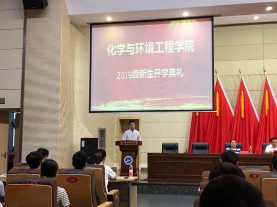 (通讯员 杨帅)9月4日下午,9428cn太阳集团古天乐2019级新生开学典礼在四教多功能报告厅举行,学院党委副书记李正新、副院长董志兵、副院长余军霞、院长助理张华丽、工会主席陈伟、制药化学研究所所长陈云峰、环境化学研究所所长邱心泓、国家级环境与环工清洁生产实验教学示范中心副主任袁华、实验中心副主任郁先哲、学院学生工作办公室全体人员、新生班主任、教师代表和2019级全体本科和研究生新生参加开学典礼。典礼由学院党委副书记李正新主持。