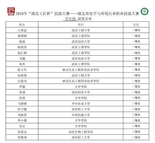 我校学生继写“湖北工匠杯”技能大赛辉煌再夺冠军 (通讯员 李亮)为“树立生态环保理念,宣传生态环保知识,选拔生态环保人才”,2019 年“湖北工匠杯”技能大赛——湖北省化学与环境行业职业技能大赛水处理技术竞赛11月9日至11月10日成功举行。本次大赛为省级一类大赛,由湖北省生态环境厅、省人力资源和社会保障厅联合主办。水处理技术项目比赛共吸引了来自华中科技大学、华中农业大学、武汉工程大学、中南民族大学、武汉轻工业大学、江汉大学和武汉工商学院等15所高校,以及武汉华测检测技术有限公司、黄鹤楼酒业和湖北相融检测有限公司等15家企业的数百名选手参赛。 我校9428cn太阳集团古天乐派出4名学生组成的专业队参加比赛,王营茹、李亮老师随队指导。继我院学生(应用化学专业)上周在“湖北工匠杯”出色表现后,再接再厉,在“湖北工匠杯”——水处理技术技能比拼中再创辉煌。经过两天激烈的角逐,王茜茹同学获得此次大赛一等奖(决赛成绩第一),伍丽青同学获得二等奖,充分体现了我校学子的专业水平和精神风采。 审稿人:郭昕