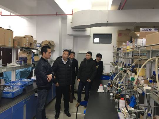 刘军博士在报告中以当前人类面临的肿瘤疾病挑战为切入点,说明了在实验室合成具有抗肿瘤活性药物的重要性和紧迫性。刘博士介绍了他们课题组以天然手性糖为原料,经过精细的逆合成设计,历经13步合成了具有抗癌活性的天然产物Siladenoserinol D,总体收率为8.07%。相对前人合成的同系产物,该路线显示出一定的优势,具有较强的学术价值和应用价值。学术报告结束后,刘军老师回答了在场师生提出的学术问题,并简要的向与会师生介绍了有机全合成和有机合成方法学的侧重点以及各自的价值,并认为全合成在未来有机化学领域大有可为。会后,刘军博士参观了化环学院部分老师的科研实验室。