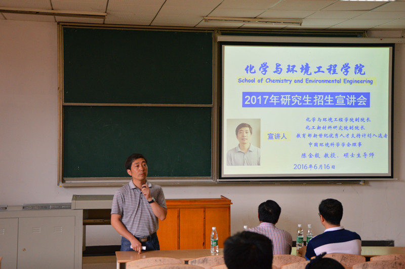 学院副院长陈金毅就化环院2016年考研情况、学院师资力量、导师研究方向、2017年考试科目及学院的研究生奖助政策向大家做了介绍。陈院长最后希望有志于考研的同学把握政策、弄清形势、找准定位、认真备考,并预祝大家考研取得好成绩。