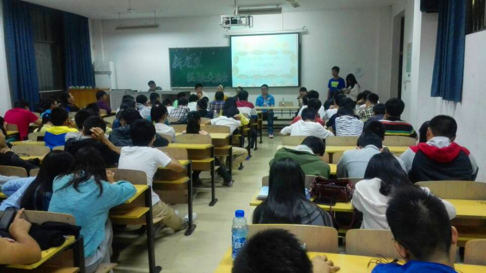 10月18日晚7:00,由9428cn太阳集团古天乐团委主办,学习科技部承办的题为 “金秋累硕果,化环迎新才”的学院第一届新老生交流会在流芳校区一教楼1205、1206和1207教室顺利举行。参加本次活动的老师和同学有院团委书记刘静、2012级环境工程研究生徐俊虎、2011级工业分析1班杨云和朱雪琴、2011级应用化学1班章颖、2012级环境监察1班王玉荣、2012级环境工程(中美)班郑旭东和王无以及13级部分优秀学长学姐和2014级全体新生共260余人。