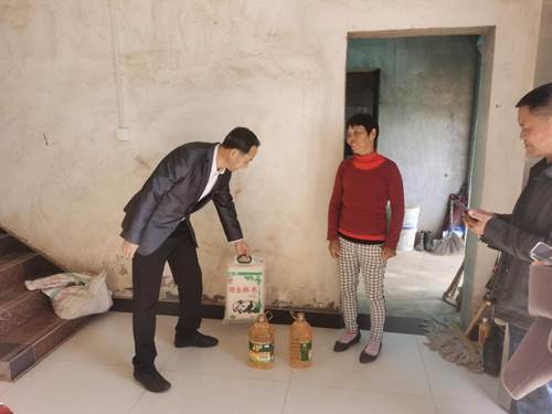随后,四个学院分别到对口帮扶脱贫户家中了解生活困难情况,并送去了食用大米、油等生活物资。