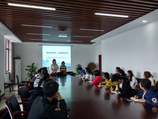 王小凤老师为同学们从记录时间、碎片时间利用和分类、防止时间切断等方面讲述了合理利用碎片时间的方法,从技能学习的角度教给大家如何有效提高思维效率。同学们在自由讨论环节积极互动,踊跃发言。