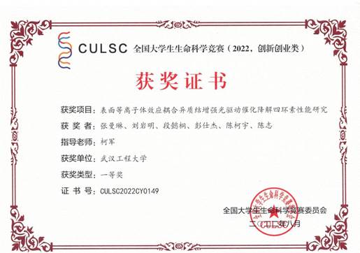 (通讯员 贾丰成)近日,由河南师范大学承办的全国大学生生命科学竞赛(2022,创新创业类)决赛落下帷幕,经网评和决赛答辩,由柯军老师指导,张曼琳同学负责(团队成员:刘岩明,段懿桐,彭仕杰,陈柯宇,陈志)的作品《表面等离子体效应耦合异质结增强光驱动催化降解四环素性能研究》在创新赛道决赛中表现优异,斩获国赛一等奖!这是我院学子在A类赛事上取得的最高级别的奖项,该成果的取得离不开学院创新创业中心的高度重视、大力宣传和积极动员,以及师生的双向奔赴,进一步检验了我院“以赛促学”和“研学结合”的育人成效,也标志我院创新创业工作“三年行动计划”迈出了实质上的一步,下一步学院将进一步针对该赛事积极总结经验、加大宣传和提前谋划,争取更多师生参与产出更多的成果。