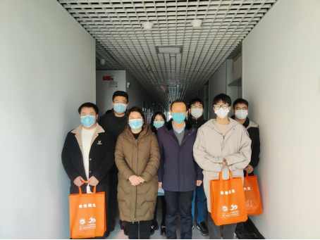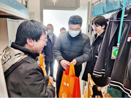 本网讯(通讯员李俊闹)情暖寒冬,“研”途相伴。2023年全国硕士研究生招生考试即将到来,考研气氛愈加浓烈,为帮助我院考研学子坚定信心,缓解压力,让同学们以更加积极平和的心态迎接考试。12月9日,我院党委书记张宗良、院长余军霞、党委副书记许守飞、副院长董志兵及2019级辅导员李俊闹共同前往我院考研学生寝室进行慰问,为同学们加油鼓劲,并送上精心准备的“考研加油包”。
