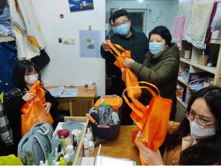 学院领导班子为同学们送上了带有“一研为定”和“金榜题名”字样的考研加油包,加油包里面的物品寓意满满,包括代表“金榜题名”的文具套装,“心想事成”的橙子、“平安如意”的苹果、“巧克难题”的巧克力、学弟学妹们亲笔手写的祝福卡片、满满校庆元素的防疫口罩等,表达了学院领导对考研学子的殷切祝福,助力同学们以更好的状态备战考试。