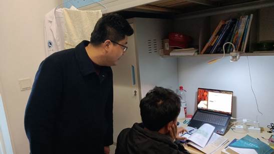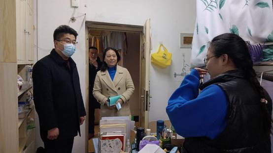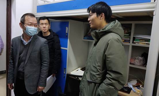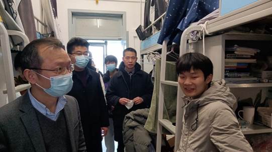为切实做好新学期开学后学生管理工作,及时了解学生的思想动态及学生居寝生活情况,确保学生管理工作有序、平稳开展和推进。2月21日,学院党委书记张宗良、党委副书记许守飞、副院长董志兵、王营茹及全体辅导员前往学生宿舍,走访慰问返校学生,了解假期动态、关心日常生活学习。