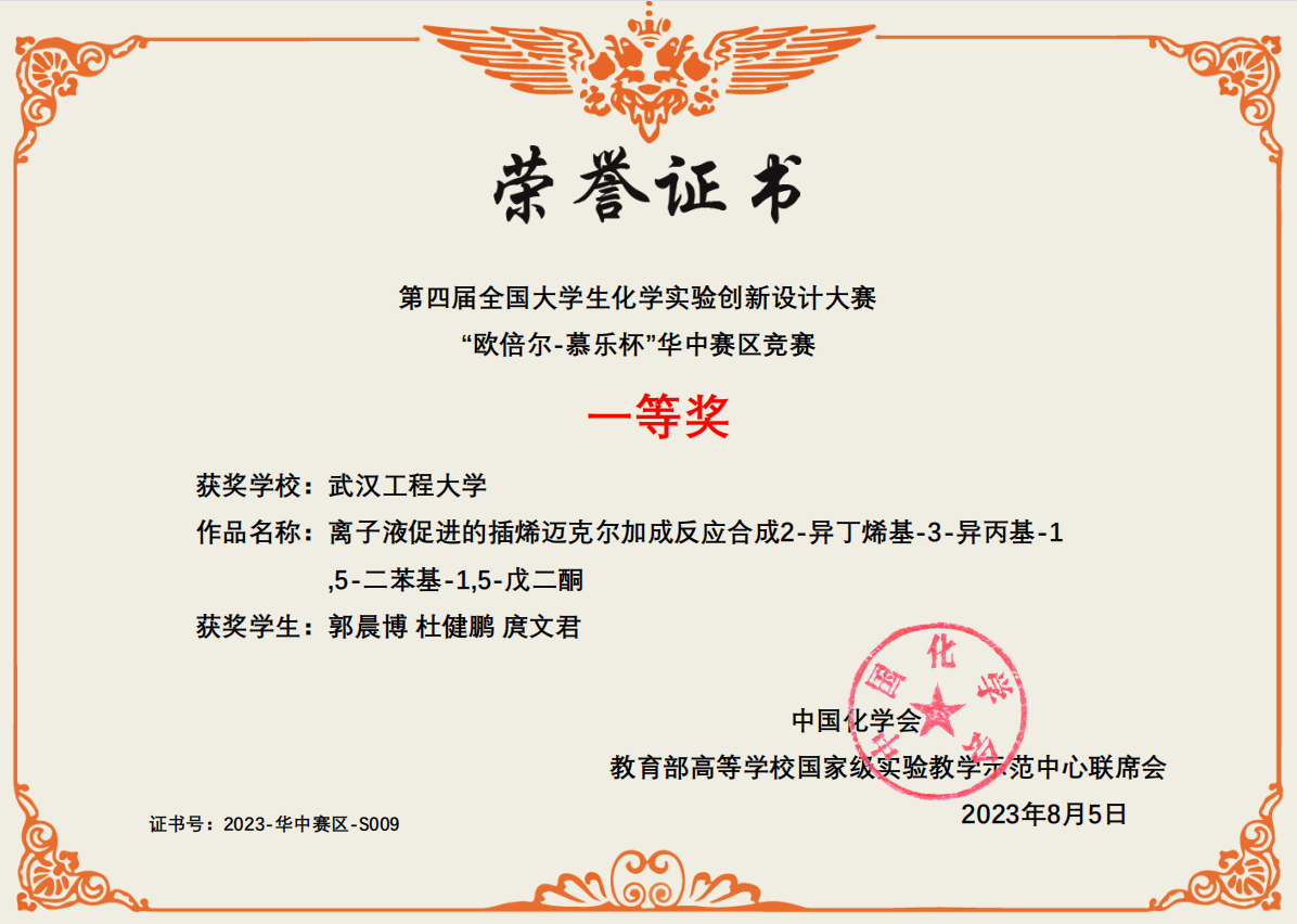 全国大学生化学实验创新设计大赛分华北、东北、华东、华中、西南、西北、华南七大赛区,按赛区初赛、决赛、全国总决赛程序进行三轮比赛。大赛分新创实验、改进实验、科普实验三个赛道,每所学校最多可报名3支队伍,提交实验论文和实验视频参加初赛,专家评审成绩约前50%的队伍晋级赛区决赛进行现场答辩,获赛区一等奖的队伍才有机会晋级全国总决赛,并且大赛规定同一所学校最多只能有一支队伍进入全国总决赛。本届大赛竞争激烈,共有447所高校、1076支队伍进入七大分赛区展开激烈角逐,最终包括北京大学、南京大学、浙江大学等90所高校的90支队伍晋级总决赛。我院“新创实验队”一路闯关,以华中赛区第9名的成绩晋级全国总决赛,经过总决赛的作品评审和现场答辩,最终获得全国二等奖。
