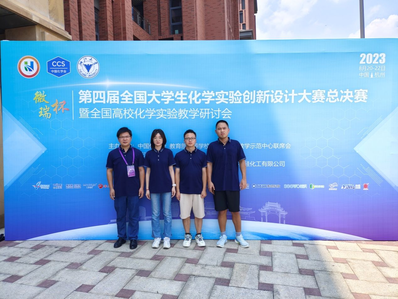 (通讯员 王刚 贾丰成)8月20至23日,“微瑞杯”第四届全国大学生化学实验创新设计大赛总决赛在浙江大学紫金港校区举行。我院应用化学专业郭晨博、杜健鹏、庹文君三名本科生组成的“新创实验”队再创佳绩,喜获全国二等奖!