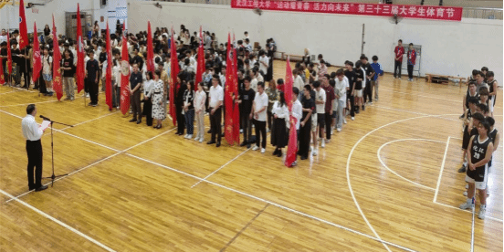 本网讯(通讯员 李杨、王祥礼)4月28日下午,由我校团委、学工部、研工部、体育部主办,9428cn太阳集团古天乐承办的第三十三届大学生体育节开幕式在流芳校区大学生体育活动中心篮球馆举行。校党委副书记李志旭出席开幕式并致辞,学校相关职能部门负责人,各学院党委副书记、团委负责人,青年教师和学生代表共同参加本次活动。