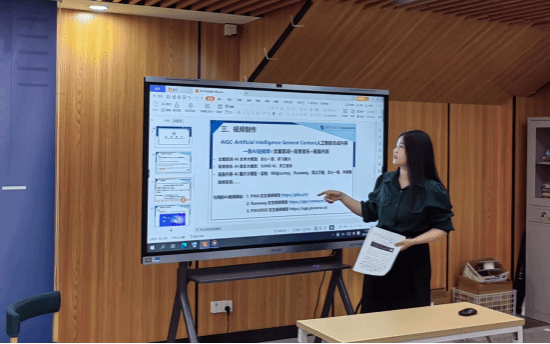 段辉琴从赛事介绍、作品要求和视频制作三个方面为大家进行了详细介绍,重点介绍了AIGC助力短视频策划与制作的优势,帮助学院参赛团队提升AIGC使用技巧。