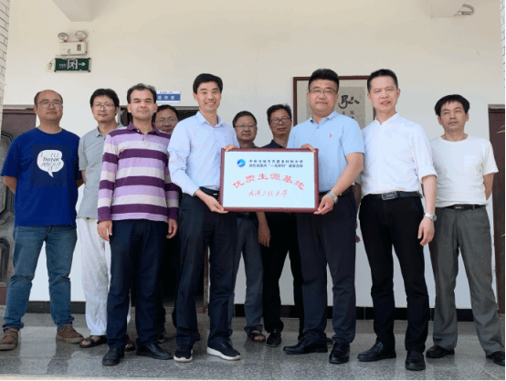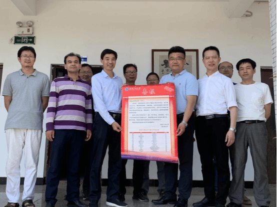 许守飞代表学校向罗田一中授予“优质生源基地”牌匾,并赠送优秀学子喜报。