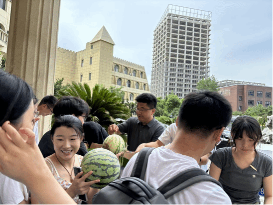 许守飞表示:“这些西瓜是精心为同学们准备的,希望同学们能在这个炎热的夏天里,找到一丝清凉和安慰”。在发放西瓜的同时,许守飞鼓励学生们保持信心,坚持到底。他表示,考研不仅是一场知识竞赛,更是一场心态和毅力的考验。在这个过程中,学生们需要坚持不懈,克服困难,才能在最后取得理想的成绩。