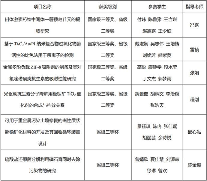 本网讯(通讯员 贾丰成)7月23日,由全国大学生生命科学竞赛委员会举办的第九届全国大学生生命科学竞赛(2024,科学探究类)落下帷幕!我院师生首次参加该类别赛事,共获得国家级三等奖4项,省级二等奖4项,省级三等奖2项!获奖学生涵盖2021级和2022级应用化学和环境工程专业!