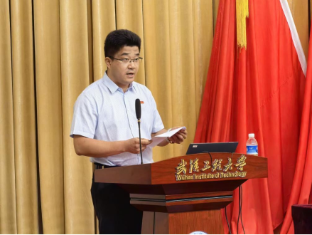 教师代表、全国优秀教师、武汉工程大学教学名师、我院有机化学教师袁华教授讲话,告诉同学们教育不仅是知识与技能的传授,更重要的是培养学生的创造力、思维能力与社会责任感。他给全体新同学提出三个努力的方向:努力做一个对国家社会有用的人,有理想、有追求;努力做一个学院学校引以为傲的人,有品质、有修养;努力做一个自己无悔、父母有光的人,有担当、有作为。