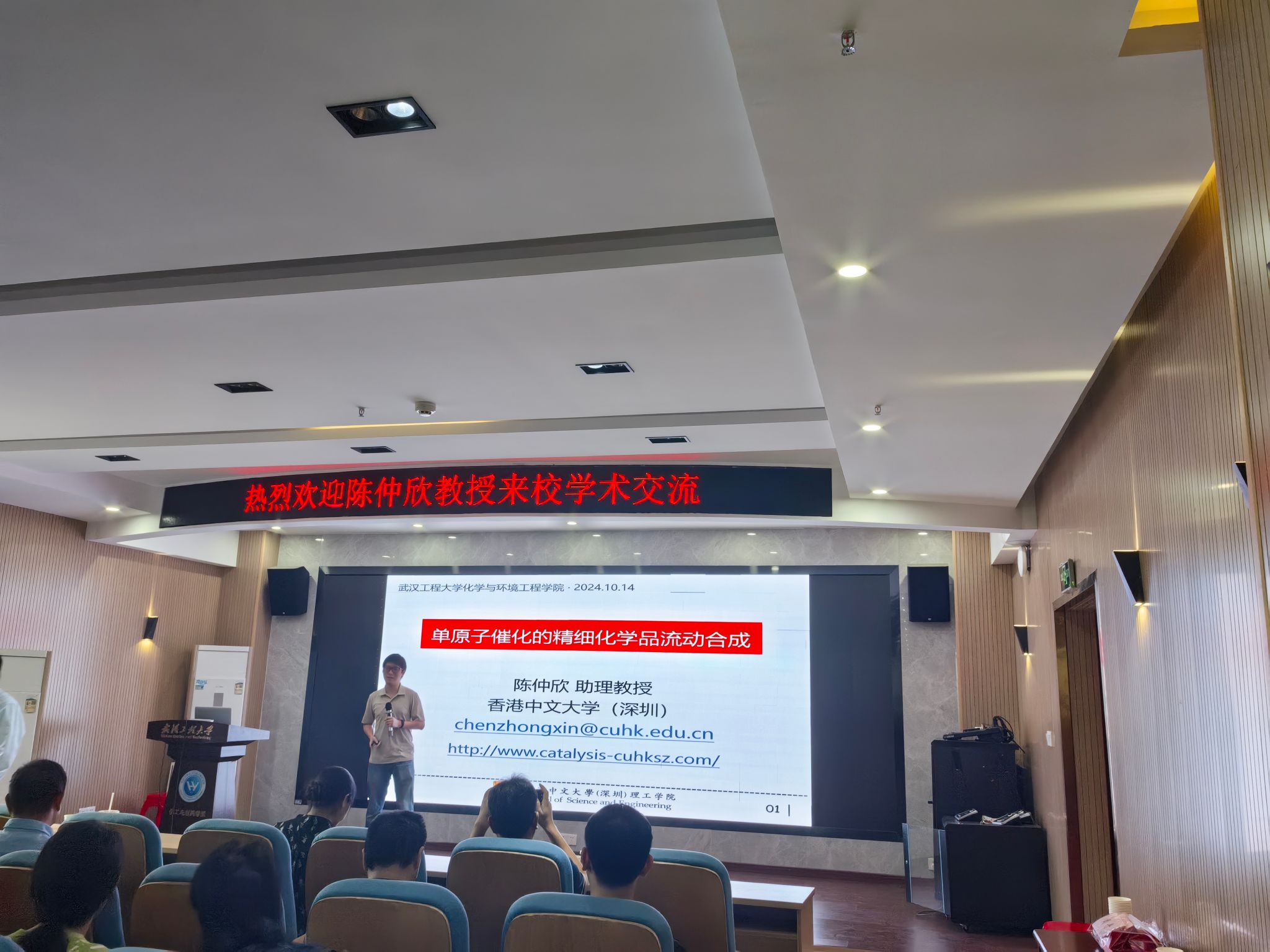 (通讯员:陈俊 奚江波)2024年10月14日上午,应我校9428cn太阳集团古天乐和研究生院邀请,香港中文大学(深圳)陈仲欣教授在化工大楼610会议室与我校师生进行了交流,并作题为“单原子催化的精细化学品流动合成”的学术报告。会议由9428cn太阳集团古天乐副院长黎俊波教授主持,来自本校和华中科技大学的多位教师、本校研究生与本科生等100余人参加了本次学术交流活动。