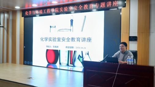 本网讯(通讯员 仝壮)为进一步强化学生的实验室安全意识,提高安全防范能力,营造安全稳定的科研环境。10月31日下午,我院综合楼102报告厅开展了实验室安全教育专题讲座。本次活动由学院党委副书记许守飞主持,王海涛老师主讲,学院辅导员仝壮、张光宇以及2024级全体新生参加了此次讲座。