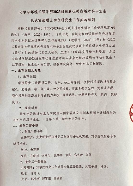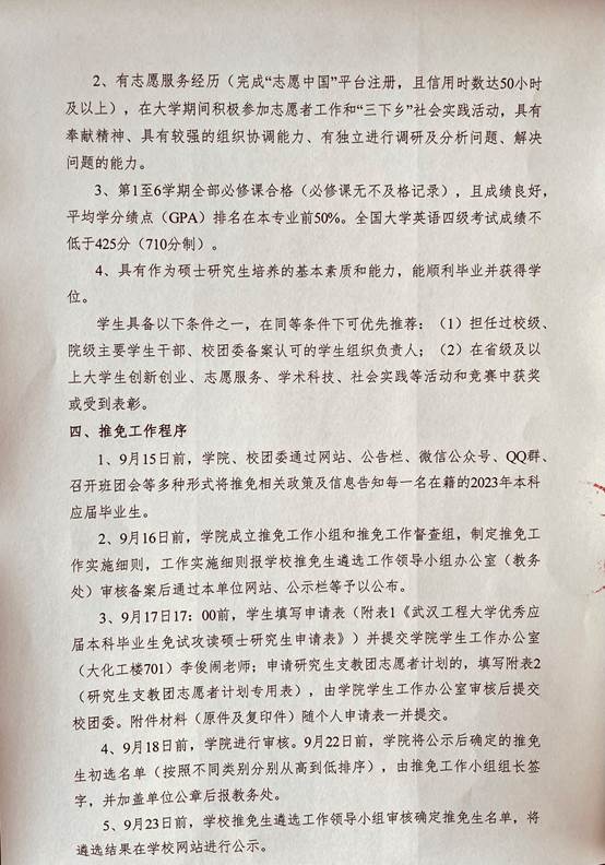 9428cn太阳集团古天乐2023届推荐优秀应届本科毕业生免试攻读硕士学位研究生工作实施细则