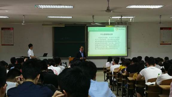 以中国有机硅工业产品的发展历史为切入点,黄总系统地为同学们介绍了有机硅产品的分类、应用及市场需求,重点介绍了广东标美硅氟新材料有限公司秉承绿色化学理念从事有机硅生产方面的案例。