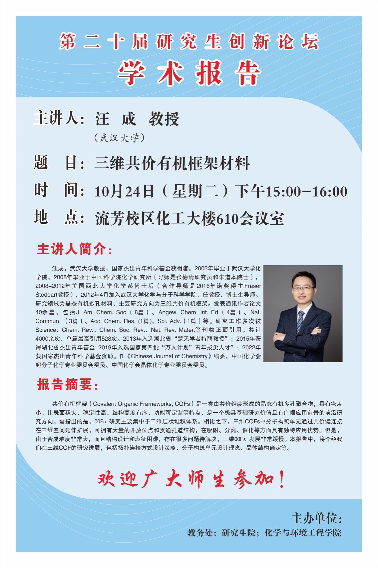 【第二十届研究生创新论坛】三维共价有机框架材料